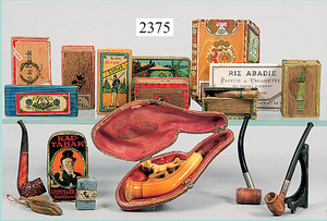 decoration parts for a shop, for furnishing a tobacconist's shop, 5 children's pipes, cigar box with real cigars, unusual