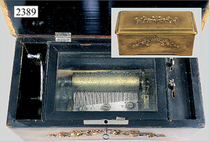 playing box, 30 cm by 17 cm, nice sound, wooden case was at the outside varnished with silver-bronze