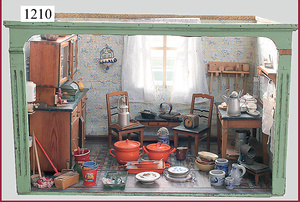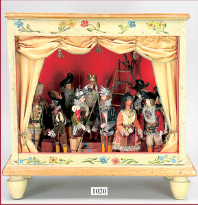 Schaukasten-Theater, Länge 40 cm, Höhe 44 cm, Tiefe 28 cm, mit 13 Figuren, schön gearbeitet