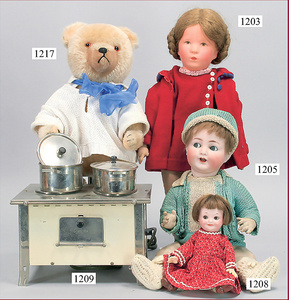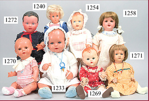 CELLBA Mädchen, 50 cm, Kurbelkopf, blaue fest eingesetzte Glasaugen, blond modellierte Frisur, etwas Farbabrieb