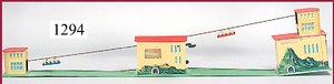 DISTLER Bergbahn, Blech, Aufschrift Montana, Uhrwerkantrieb intakt, 1 Bahn hakt etwas, Länge 82 cm, gemarkt Made in US-Zone, Germany, altersbed. kl. Lackabplatzer, altersbed. leicht verzogen