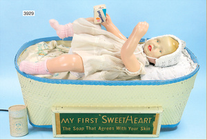 Werbefigur, Gropp, 80 cm lang, mit sich bewegendem Masse-Baby, elektr. Antrieb, Werbe-Objekt für Seife