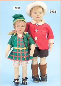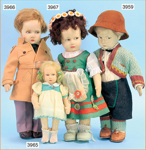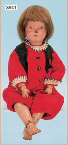 LENCI Typ Junge, Filz, Kopf und Körper, 44 cm, beide mittleren Finger an einem Stück genäht, braune gemalte Augen, gemalter gesch. Mund, schöne Kleidung, guter Zust.