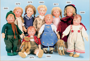CELBA Gretchen, 46 cm, Kurbelkopf, blaue, fest eingesetzte Glasaugen, stark ausmodellierte Haare (Affenschaukel), leichter Farbunterschied zwischen Kopf und Körper, guter Zust.