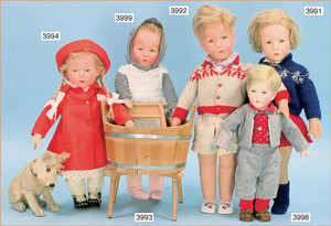 KÄTHE KRUSE Puppe Nr. 1, Stoffkopf, 3 Hinterkopfnähte, breite Hüfte, separat angenähter Daumen, kl. Abriebstellen an der Stirnlocke, sonst schöner Orig.-Zust.