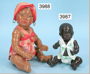 PETIT COLIN Farbige Babypuppe, Neger, ca. 1950, 30 cm, Celluloid, Kurbelkopf, braune Glasaugen, guter Zust.