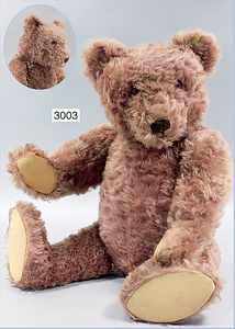 STEIFF Bär, dunkelbraun, mit Knopf, rote Fahne, Nr. unleserlich, Glasaugen, 73 cm, Filztatzen in gutem Zust., lange abgeknickte Arme, Buckel, Mohair an einzelnen Stellen etwas ausgegangen, sonst guter Zust.