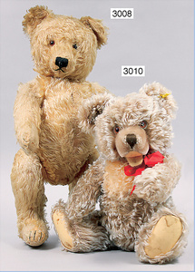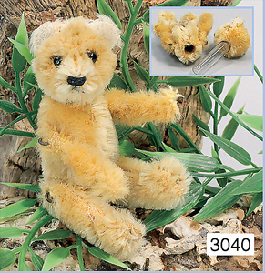 Steiff Bär, 50 cm, ca. 1925, blond, lange abgeknickte Arme, Buckel, Tatzen übernäht, an einigen Stellen Mohairverlust sonst volles Mohair, kl. off. Stelle an einem Bein, Nasenbestickung nicht original, mit Knopf. Dieser Bär stammt aus der Familie eines jungen Paares, dass mit dem Verkauf seine Hochzeit finanzieren möchte. Der Bär wurde von dere Firma Steiff nach Zustand und Alter geschätzt. Der Verkauf sowie die spätere Hochzeit wird im Spätjahr im deutschen Fernsehen (Mitteldeutscher Rundfunk) ausgestrahlt. Sie erwerben einen berühmten Bären mit eigener Gescchichte.