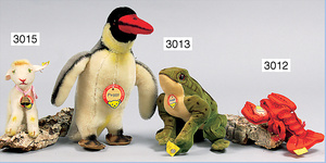 STEIFF Konv. 2 Teile, 1 Frosch, Froggy, komplett, Nr. leider unleserlich, 12 cm Sitzhöhe, Samt, 1 Pinguin, Peggy, mit Brustschild, 20 cm stehend, guter Zust.