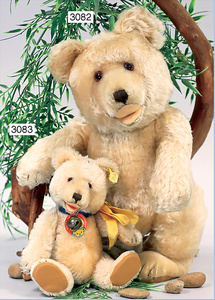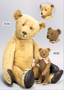 STEIFF Bär, ca. 1925, 42 cm, mit Knopf, gelb, lange abgeknickte Arme, ausgeprägter Buckel, Orig.- Filz an den Tatzen, bis auf ein paar min. Stellen in sehr gutem Zust., ein wenig Mohairverlust um die Schnauze, sonst gut, schöner Ausdruck