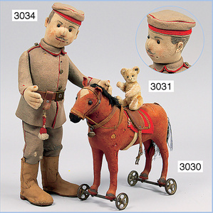 STEIFF Infanterist, deutscher Soldat, ca. 1915, 36 cm, Filz, bemaltes Gesicht, graue Filzkleidung mit kleineren Filzflicken, Stoffstiefel, Sohle mit ca. 28 Orig.-Knöpfen genagelt, beweglich
