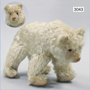 STEIFF Zottelbär, ca. 1919, 22 cm hoch, 36 cm lang, Langhaar-Mohair, weiß, helle Nasenbestickung, stehend, weich gestopft, Filztatzen in sehr gutem Zust., schöner Ausdruck