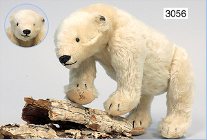STEIFF Polarbär, ca. 1910, mit Knopf, weiß, Höhe 12 cm, Kugelgelenkhals, gegliedert, min. Fehler an den Filztatzen, an vereinzelten Stellen etwas Mohairverlust