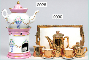 Teewärmer, Revelleuse, Porzellan, 15 cm, Kanne mit Deckel, Gestell mit Brenner, um 1900, ausgefallen