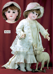 ALT, BECK & GOTTSCHALCK 1360, 20 cm, Kurbelkopf, braune Schlafaugen, off. Mund, oben Zähne, Beine gegliedert, mit kurzen Oberschenkeln, Arme fest, Mohairperücke