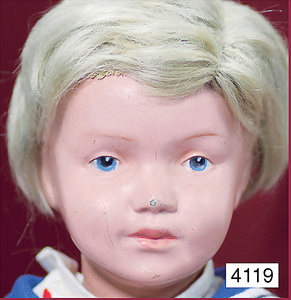 KAULITZ Junge, 42 cm, Masse-Kurbelkopf, blaue gemalte Augen, geschl. Mund, Gliederkörper, Hände farbl. Ausgebessert