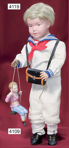WIESENTHAL, SCHINDEL & KALLENBERG gemarkt WSK 130, 46 cm, Biskuit-Kurbelkopf, braune gemalte Augen, gemalte Haare, geschl. Mund, Kinngrübchen, Gliederkörper, Matrosenkleidung, alte Schuhe