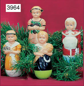 Konv. 4 Celluloid-Steh-Auf Figuren, 8 cm, schön modellierte Frisuren u. Kleidung, verkörpern die 4 Jahreszeiten