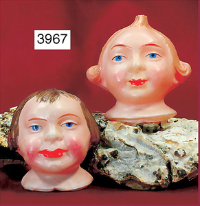 wachsüberzogene Papiermaché-Puppe, 22 cm, braune fest eingesetzte Glasaugen, geschl. Mund, modellierte Haare mit angedeutetem Haarreif, Wachsabplatzer am Reif, Holz-Rumpf, -Arme u.- Beine, ausgef. Gr.