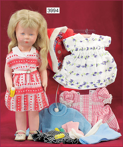 KÄTHE KRUSE Puppe XII, im Orig.-Kart., US-Zone, 46 cm, Bemalung etwas abgerieben, alte Kleidung, alte Schuhe, dazu einige Teile Kleidung, 50er/60er Jahre