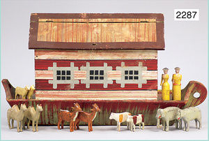 Schiffsarche, 43 cm, ca. 1910, 2 Personen, 21 Reifentiere, meist guter Zust., meist kl. Fehler, Orig.-Bemalung