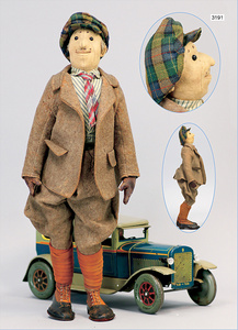 STEINER Baby, Frankreich, gemarkt J Steiner B SGDG Paris FI REA 13, 52 cm, gepresster Biskuit-Kurbelkopf, blaue fest eingesetzte Paperweightaugen, geschl. Mund, Kinngrübchen, durchst. Ohren, alter Federaufzug, Orig.-Mohairperücke in sehr gutem Zust., mit Papiermaché-Kopfdeckel, schöner ausgef. Gliederkörper mit festen Handgelenken und schlanken Fingern, Orig.-Kleidung, -Unterkleidung, -Schuhe und -Strümpfe, unberührter Orig.-Zust., sehr schöner Ausdruck