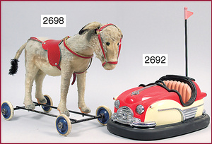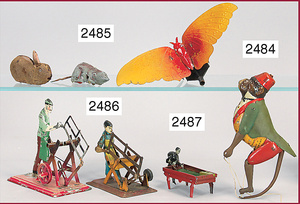 Schmetterlings-Laufrad, Blech, 22 cm breit, vordere Stange fehlt, sonst gut, kl. Maus, Antrieb fehlt, dazu 1 Hase, Blech
