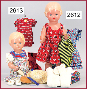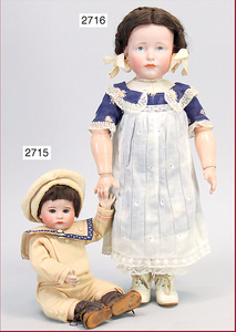 2 Teile Puppenstuben-Puppen, Kinder, 9,5 cm u. 10 cm, 1x gemalte Augen, 1x Glasaugen, bewegl. Arme u. Beine, Orig.-Kleidung u. Unterkleidung