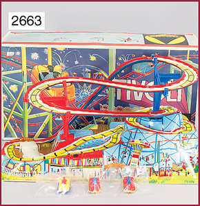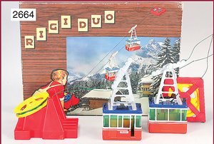 TECHNOFIX 2 Triebfahrzeuge für Bergbahnen, rot/blau unbespielt. Uhrwerk intakt, Schlüssel