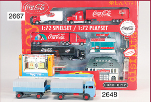 Pepsi Cola Pick-up Truck Phone, im Orig.-Kart., auf Funktion nicht überprüft, dazu 1 Gama Polizeiwagen, Mercedes Benz 450 SE, stark bespielt