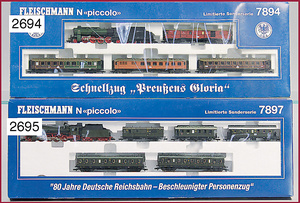 Konv. Fleischmann Piccolo, Lok Nr. 7823, dazu 7 Waggons, darunter Gepäckwagen u. Restaurantwagen