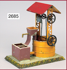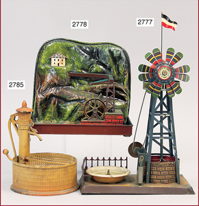 MÄRKLIN Brunnen mit Windrad, Höhe 28 cm, Blech handlackiert, altes MÄRKLIN-Zeichen am Boden, sehr schöner Orig.-Zust.