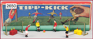 LUDA Tisch-Fußballspiel, in Holzrahmen, vollst., bespielt, im Orig.-Kart.