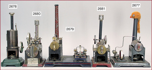 Dampfmaschine, Hersteller?, stark bespielt, Schornstein fehlt, dazu 2 Antriebsmodelle, Schöpfrad u. Klopfwerk, altersbed. kl. Roststellen u. Farbabplatzer