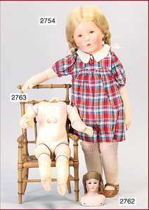 KÄTHE KRUSE Mädchen, dt. Kind, deutl. sichtbare Hinterkopfnaht, sehr guter Zust., mit abgenähten Kniekehlen, 49 cm, alte Kleidung u. Schuhe