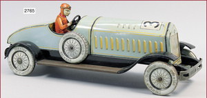 DISTLER Rennwagen, Auto Grand Prix, Blech lithogr., Länge 52 cm, Uhrwerkantrieb intakt, mit Fahrerfigur, Blech, kl. Lackabplatzer