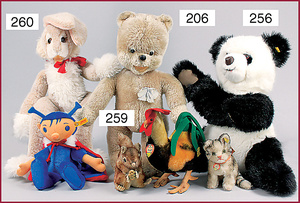 STEIFF 3 Teile, 1 Hahn, Höhe 26 cm, mit Knopf, Schild u. Fahne, Nr. 1328,07, Eichhörnchen, Perri, 13 cm, mit Knopf, Schild u. Fahne, Nr. 4317.03, Katze, Susi, 15 cm, mit Knopf, Schild u. abgeschnittener Fahne, Nr. 3814.00, alle etwas abgeliebt aber guter Zust.