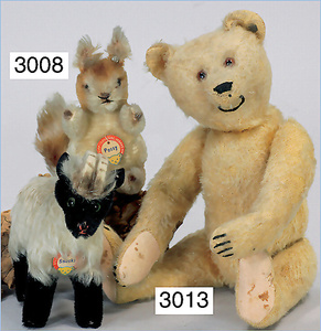 STEIFF Konv. 2 Teile, 1 x Snucki, Heidschnuck, 11 cm, stehend, mit Knopf und Brustschild, 1 x Eichhörnchen, Possy, mit Knopf und Brustschild, 10 cm