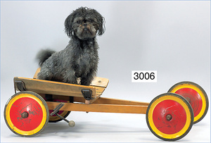 STEIFF Chow Chow, ca. 1930, 22 cm, auf Exzenterrädern, hellbraunes Mohair, minimaler Mohairverlust