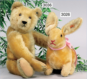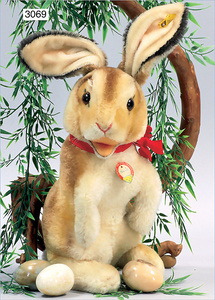 STEIFF Manni, Hase, mit Knopf, Schild und gelber Fahne, Nr. 3020,40, 46 cm, drehbarer Kopf, Biegeohren, guter Zust.