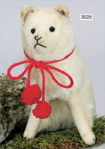 STEIFF Wolfspitz, hergestellt um 1902-1904, 15 cm, mit Knopf, sitzend, kurzes Mohair, Filzgesicht, rote Seidenkordel mit zwei Quasten, sehr schöner unbespielter Zust.