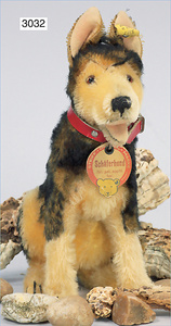 STEIFF Fox-Terrier, mit Knopf, minimale Reste der weißen Fahne, Vorkrieg, stehend, 10 cm, seltene Größe, Kunstseidenplüsch