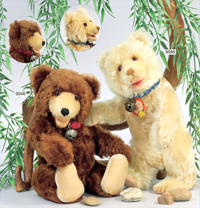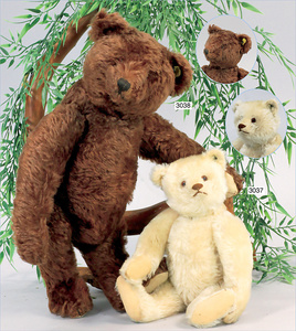 STEIFF Braunbär, ca., 1930, mit Knopf, und Fahne, Nr. auf der Fahne ist 1318,02 H, 30 cm lang, Kopfdrehmechanik, auf 4 Pfoten, Filztatzen in gutem Zust., an wenigen Stellen etwas Mohairverslust, ausgefallen