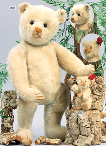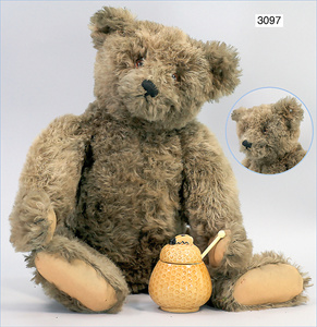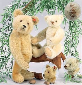 STEIFF Mittelkopfnaht-Bär, ca. 1928, mit Knopf minimale Reste der roten Fahne, Vorkrieg, 65 cm, Glasaugen, lange abgeknickte Arme, Buckel, Filztatzen in gutem Zust., maisfarben, schönes volles Mohair, Kippstimme, selten, sehr guter Zust.