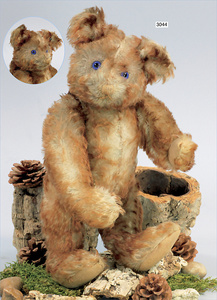 STEIFF Fluffy, ca. 1930, 22 cm, sitzend, drehbarer Kopf, schönes kräftiges Mohair, blau gespritzt, Seidenschleife