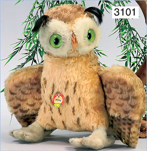 STEIFF Eule, Wittie, 35 cm, mit Knopf, Schild und Fahne, Nr. 2620,35, schöne kräftige Farben, unbespielt