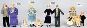 4 Teile, Puppenstuben-Puppen, Oma, Biskuit- Arme und -Beine, Stoffkörper, 12 cm, 3 Kinder Biskuit-Puppen, 6 cm