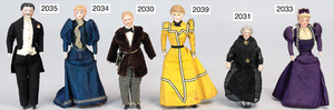 Puppenstuben-Puppe, Dame, Biskuit-Arme und -Beine, Stoffkörper, ausgefallene Orig.-Kleidung und Unterkleidung, mit Hut, 16 cm