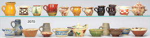 Konv. Puppenküchen-Ausschmückungsteile, Zwiebelhalter, blau emailliert, Wichskasten, Blech, kl. Korb, Blech lithogr., Schüssel, Blech lackiert, Karaffe, Bierkrug, Blech-, Keramik- und Holzteile