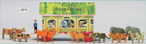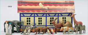 ERZGEBIRGE Lederarche, Paul´s Soap Zirkus, 28 cm, mit lithogr. Papier beklebt, Aufschrift "Made in Germany", (Export für Nordamerika), 23 Reifentiere, Noah, ca. 1920, sehr guter Zust., Holzräder